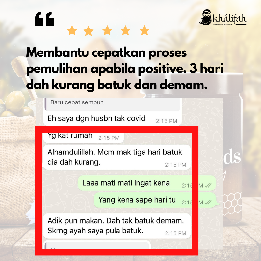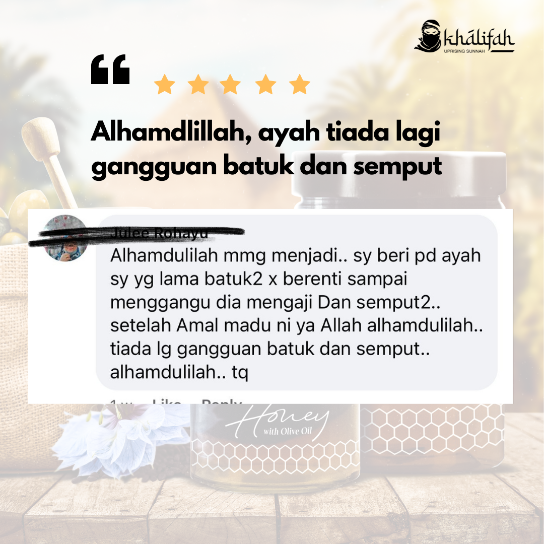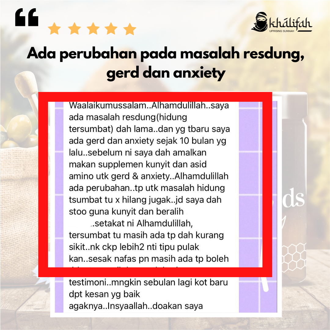 Tiada masalah kerana Madu Habbatussauda’ Khalifah 100% Asli dan tiada campuran bahan kimia yang boleh mengganggu pengambilan bersama suplemen lain.